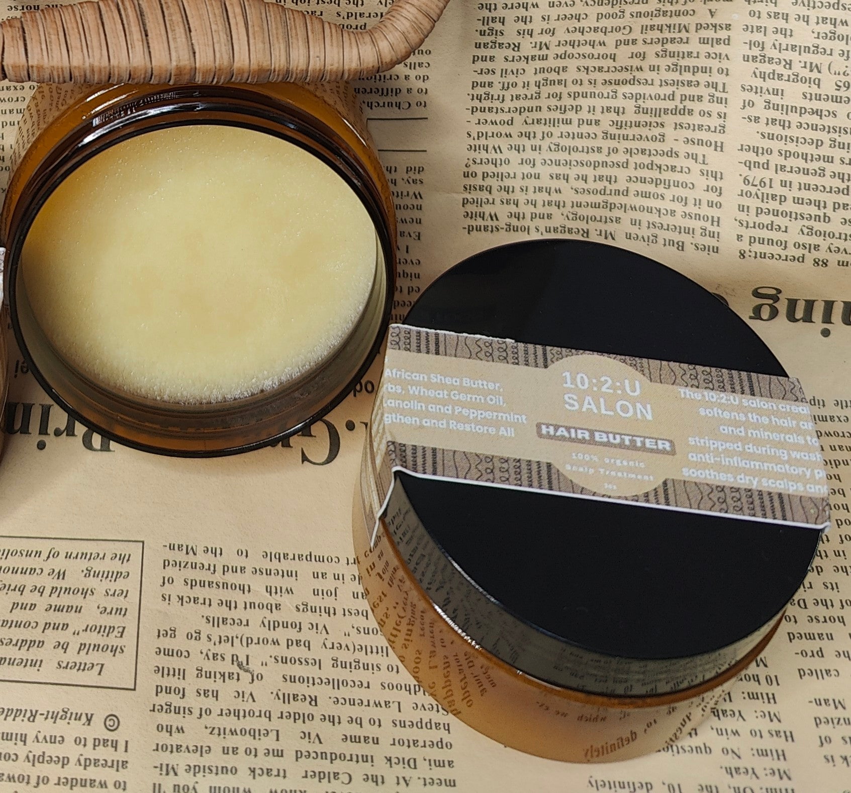 The 10:2:U salon created a hair butter coined "Rooted" that softens the hair and provides vitamins and minerals to the scalp which are stripped during washing. With its natural anti-inflammatory properties, this butter soothes dry scalps and stimulates growth.